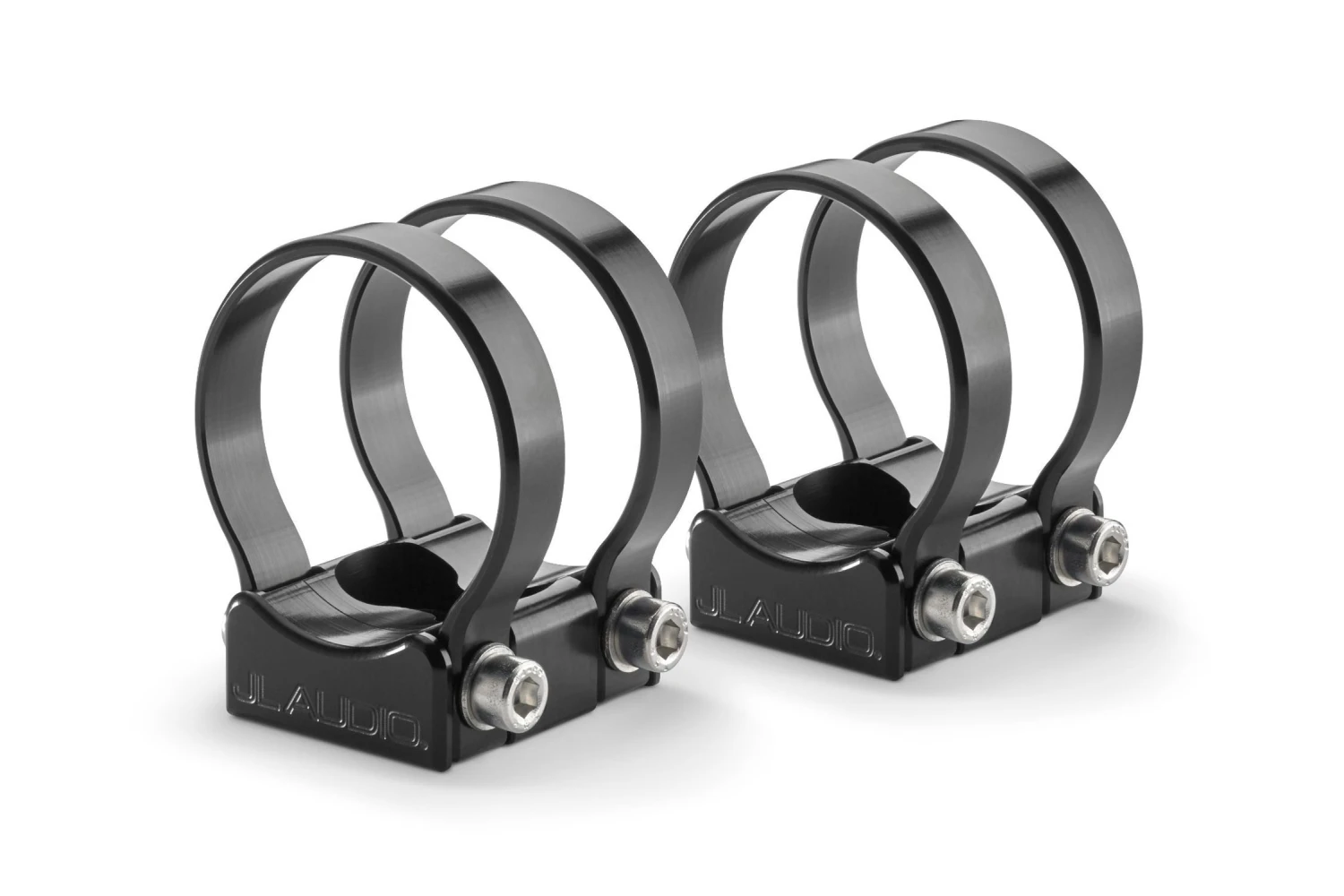 Low-profile, machined mounting fixtures provide rock-solid attachment points for the VeX™ Enclosed Systems to a variety of roll cage diameters. They feature the JL Audio name logo machined in the side. Each mounting fixture set is designed to mount two VeX™ Pods.