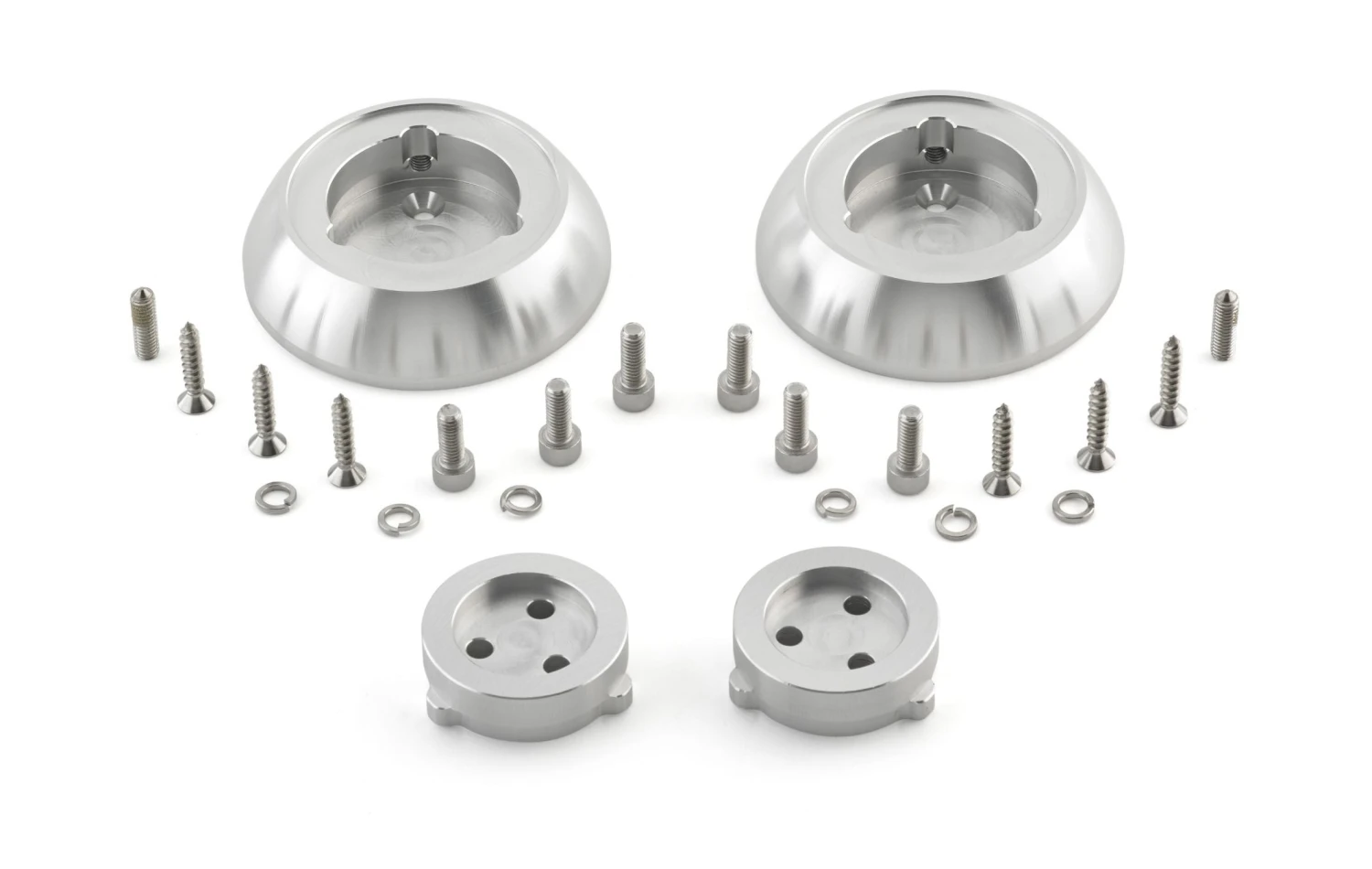 Designed to attach VeX™ Enclosed Speaker Systems to flat surfaces, these low-profile mounting fixtures are precision-machined from marine-grade aluminum to create rock-solid attachment points. A swivel-mounting base is included with each fixture for 360 degrees of total rotation, allowing precise aiming of each VeX™ pod for optimum sound. Each fixture features a tough, clear anodized finish that’s UV/corrosion-resistant and includes stainless-steel hardware for years of durability in all outdoor environments. Each mounting fixture set is designed to mount two VeX™ Pods.