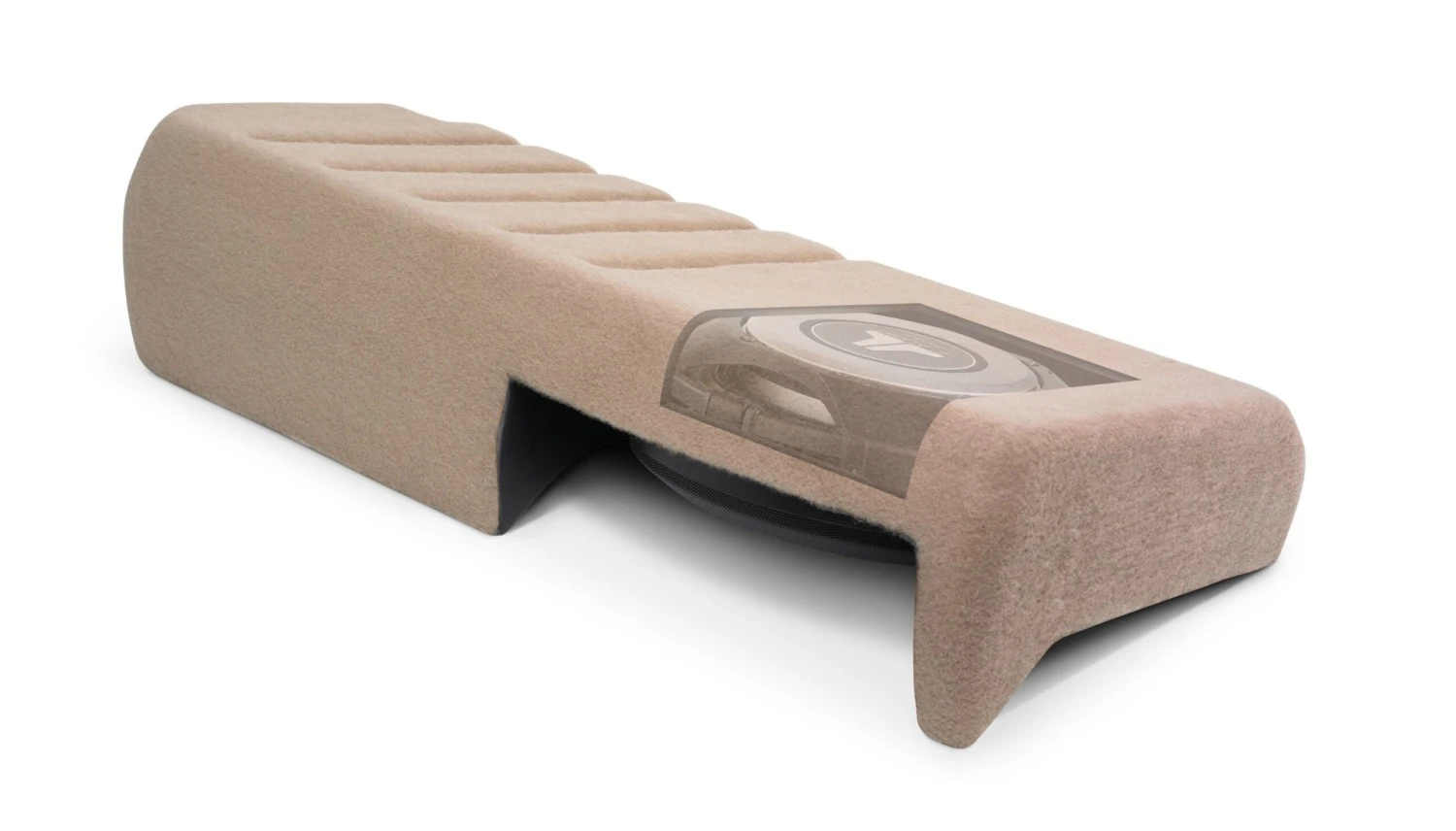 We now offer two clever Stealthbox® solutions for Ford’s biggest hauler: one that installs inside the center console and this one: a super-thin, all fiberglass enclosure loaded with our revolutionary 13TW5v2 subwoofer and designed to install under the rear bench seat. So, if your console space is non-negotiable, you can still get world-class sub-bass that remains invisible and doesn’t compromise your truck’s people space.