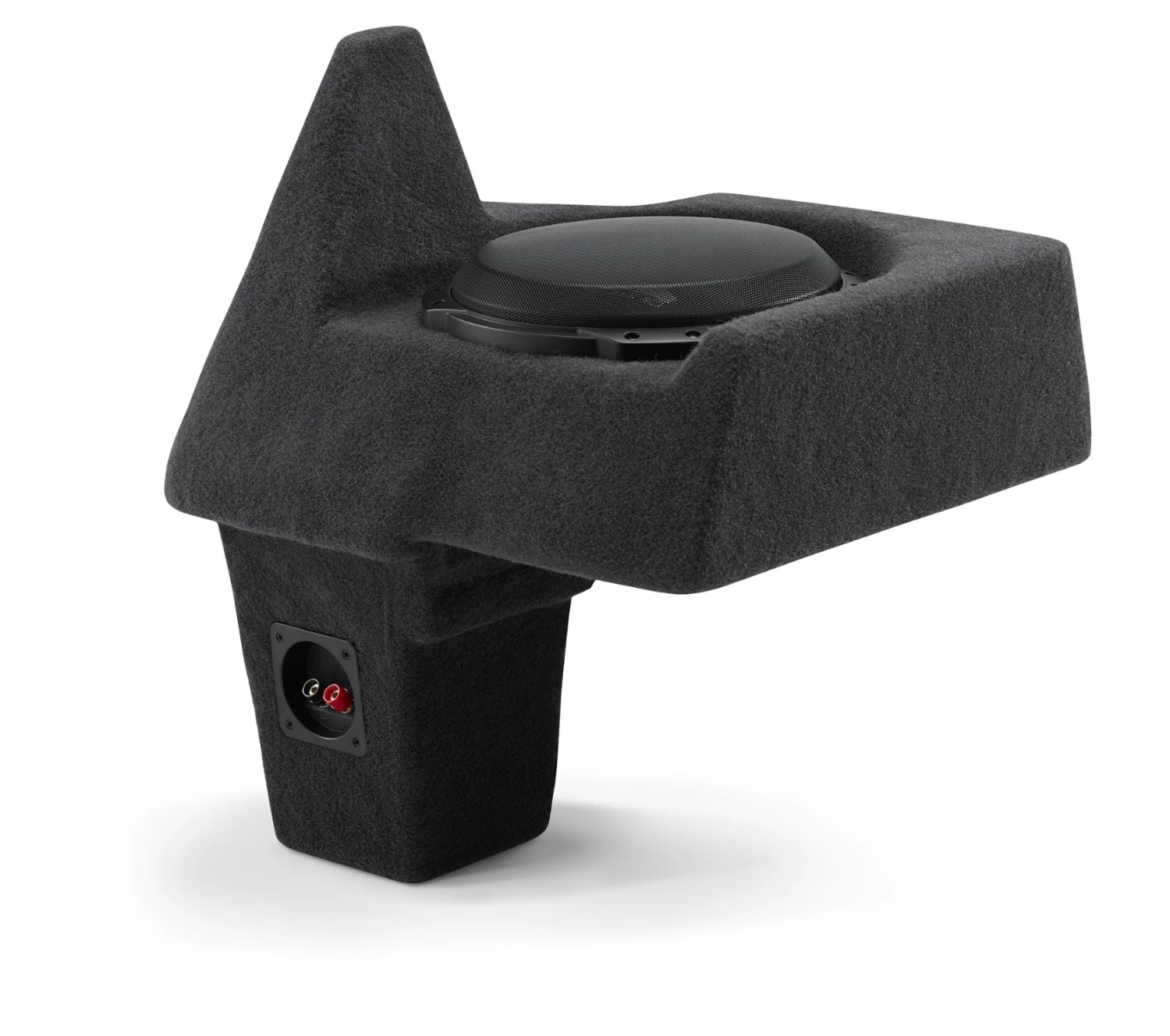 The Hard Data: Contains one 10TW3-D4 subwoofer in a sealed enclosure. 400 watt power handling. Wired for 2-ohm mono. Installs into driver side hatch storage compartment. Steel mesh grille is included to protect the Subwoofer. Installation does not affect storage of targa-top. No holes need to be drilled for installation. Easy to remove and replace. Use of driver’s side, rear storage compartment is lost with installation. Storage compartment lid must be removed for installation, but can be replaced if Stealthbox® is removed. Will not fit convertible model.