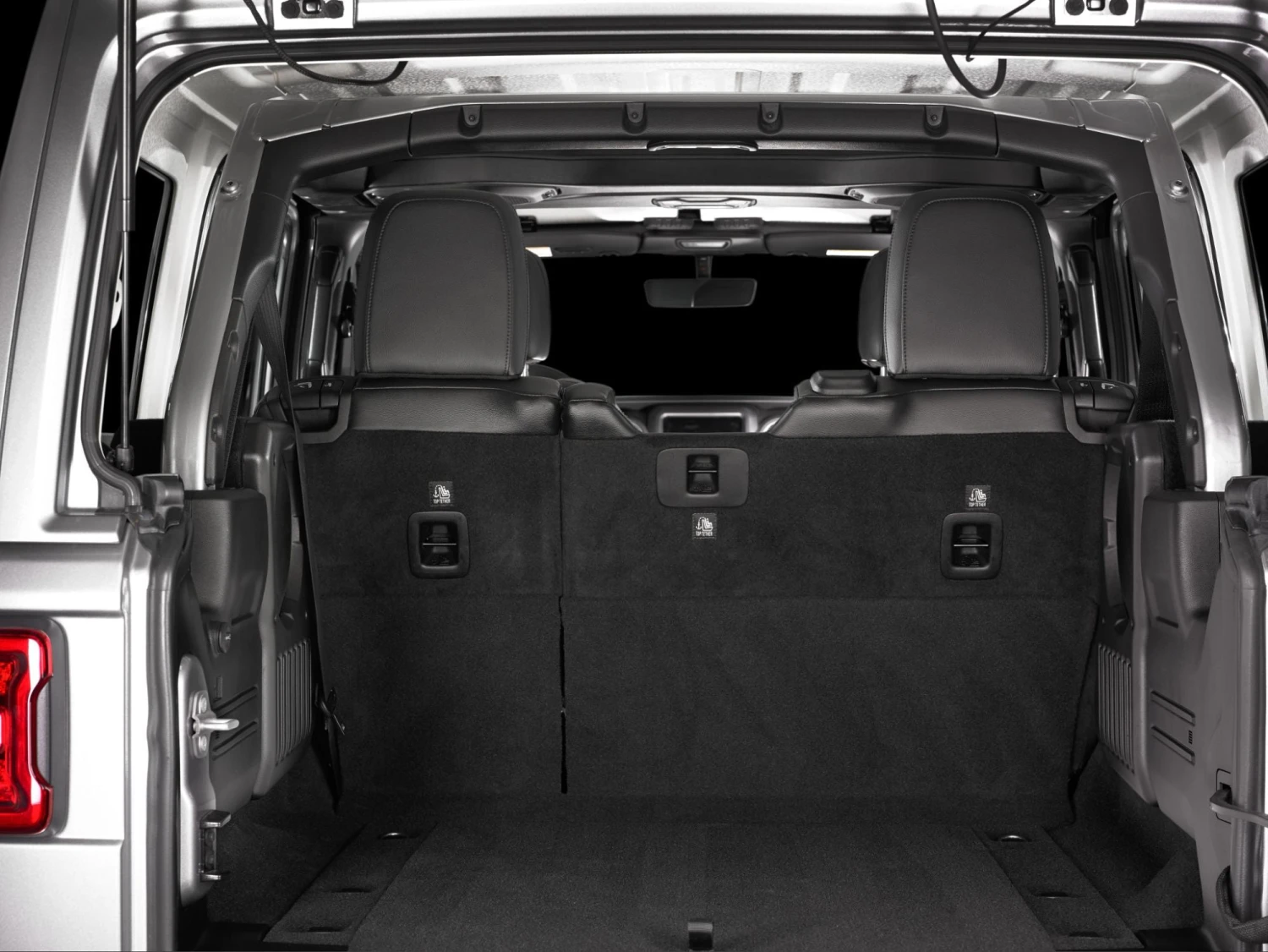 Soft-top models: Stealthbox® installation does not interfere with normal top operation, except for the final position where the top mechanism is detached from the rails.