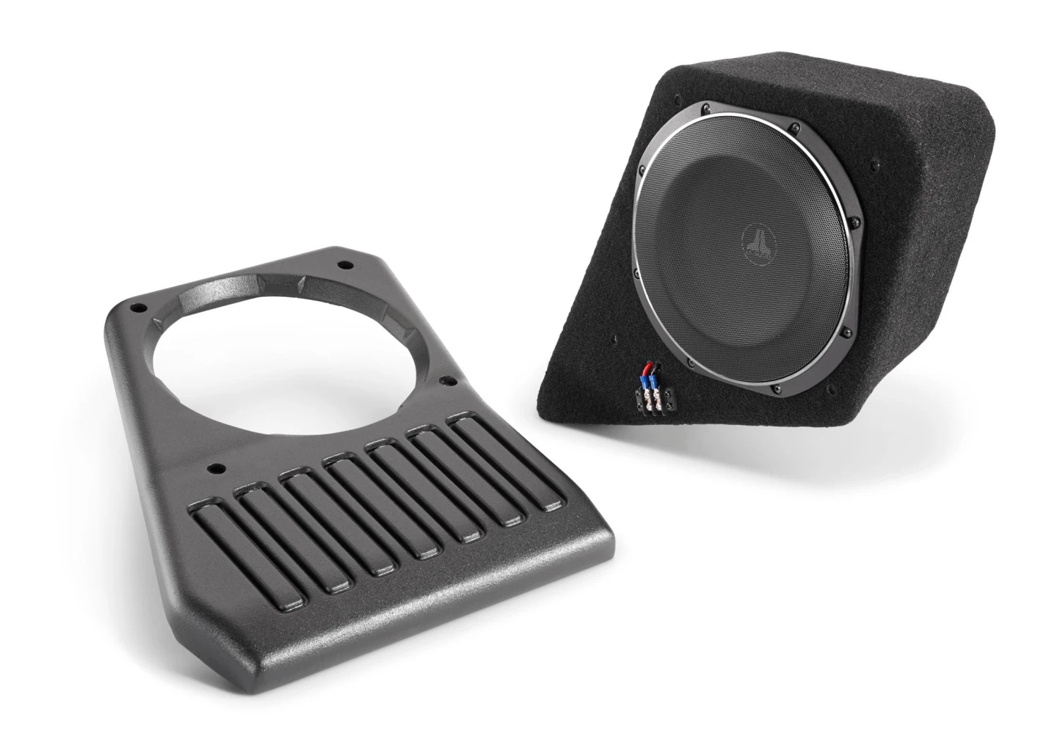 The Hard Data: Contains one 10TW1 in a sealed enclosure with 300 watt power handling. Choose from 2 ohm or 4 ohm models, driver or passenger side. Each enclosure installs above one rear wheel well. Black steel mesh grille is included with each.